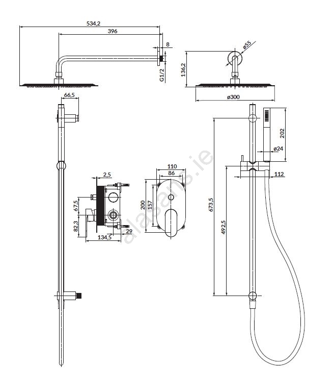 • stainless steel shower head SLIM (0.2 cm) with rain shower head with a diameter of 25 cm,