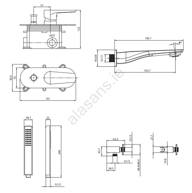 • a 1-function hand shower, 2.4 cm in diameter, with Cersanit EasyCLEAN silicone nozzles,