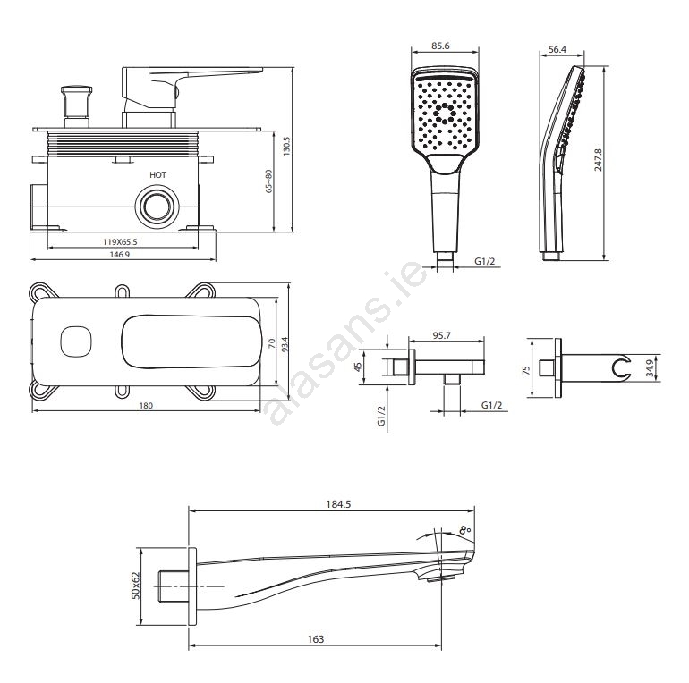 • This bath set with a concealed mixer is an elegant addition to any bathroom.