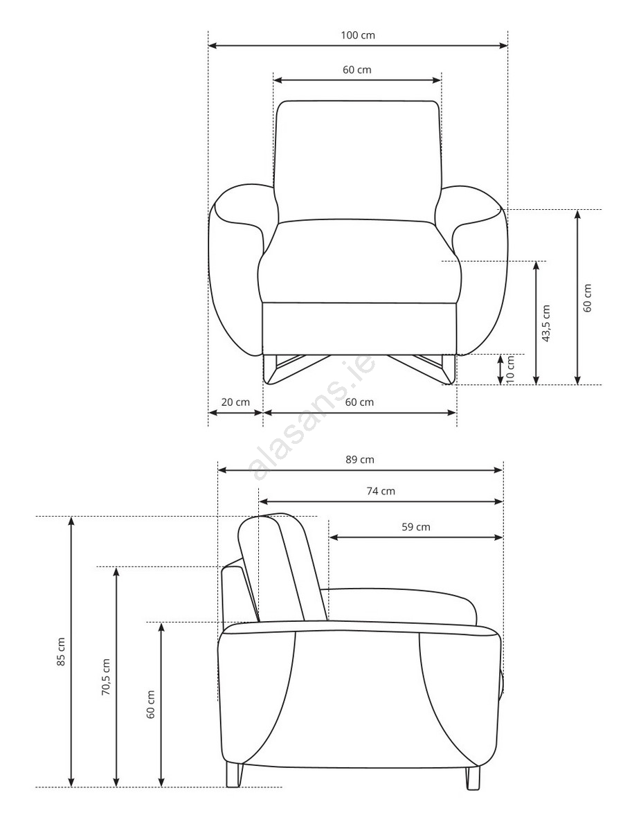 • A comfortable seat height of 43 cm ensures easy sitting down and standing up.