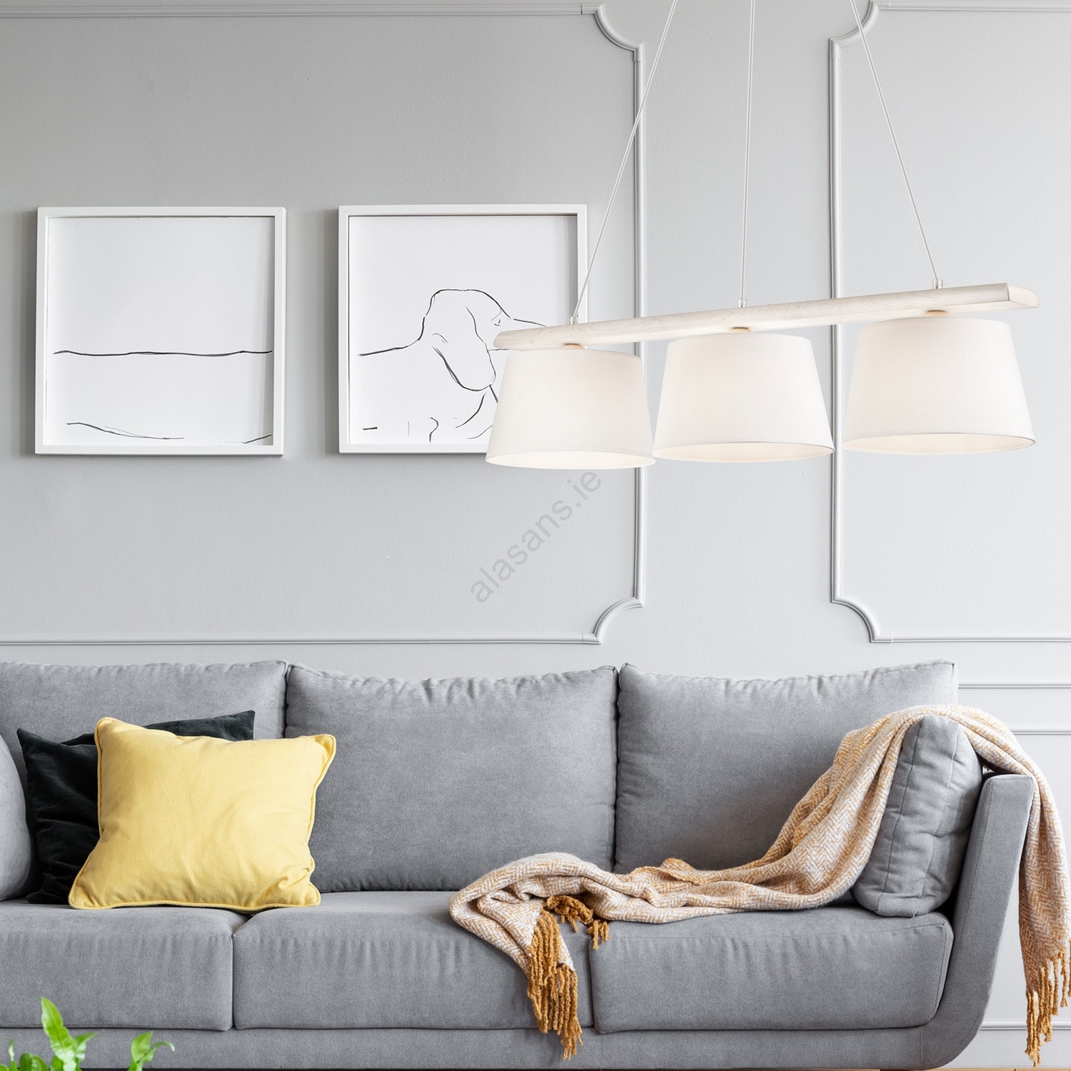 AIDA cable-suspended chandelier 3xE27/60W/230V, oak/white