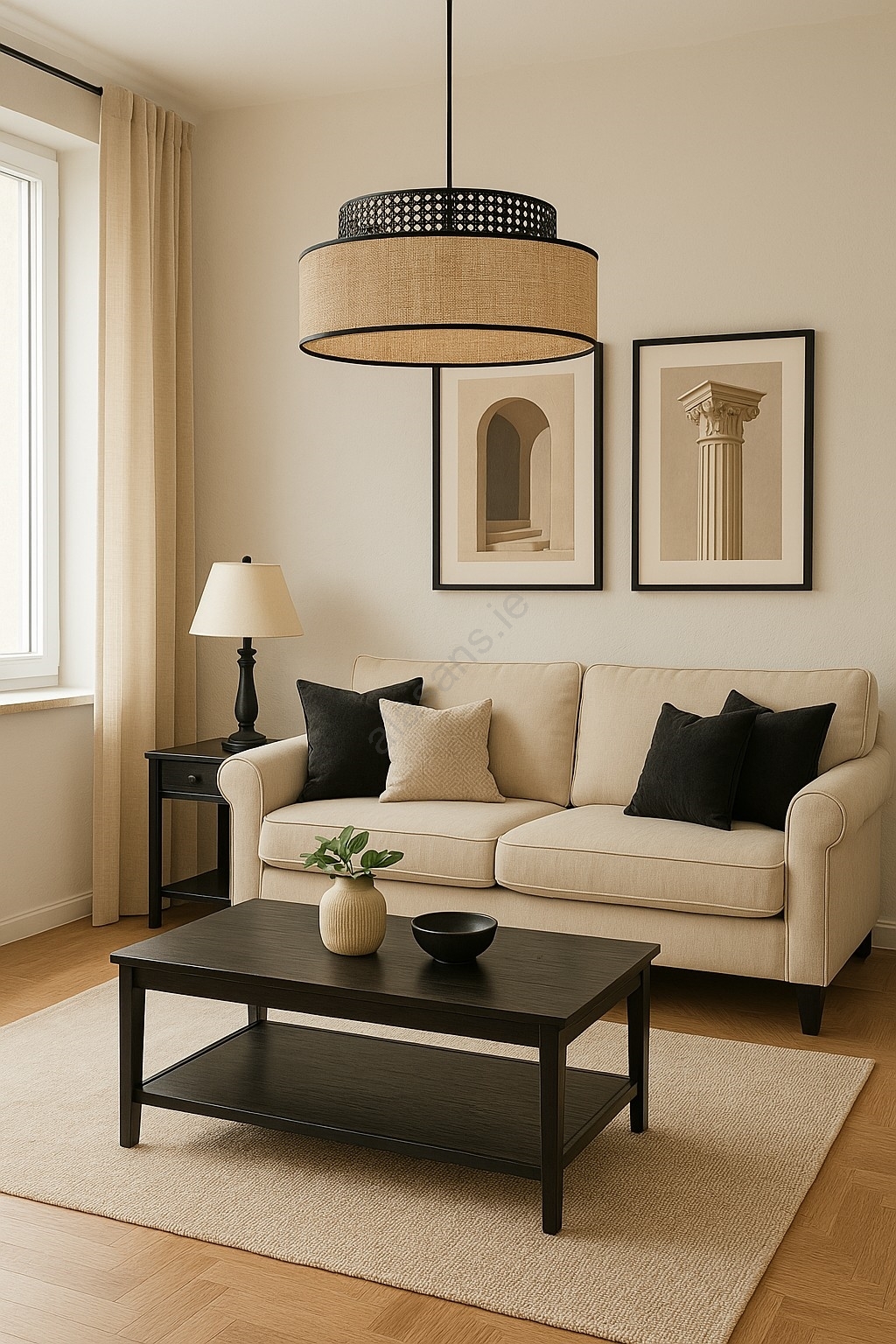 • Chandelier on a string BOHO 1xE27/60W/230V d. 40 cm black/beige
