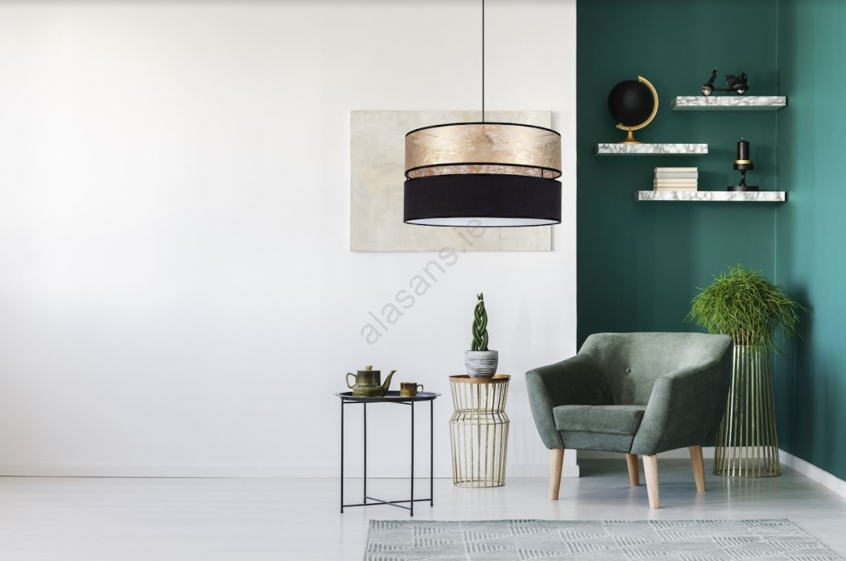 Chandelier on a string LIMA 1xE27/60W/230V gold/black characterizes nice and functional design.  A bulb with E27 cap is suitable for the light. Here, you can buy other bulbs at advantageous prices. You will have an interesting addtiion to your home.