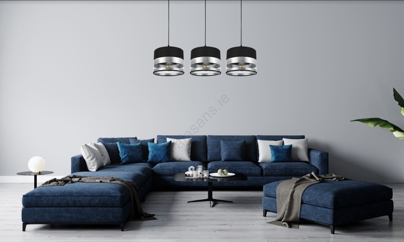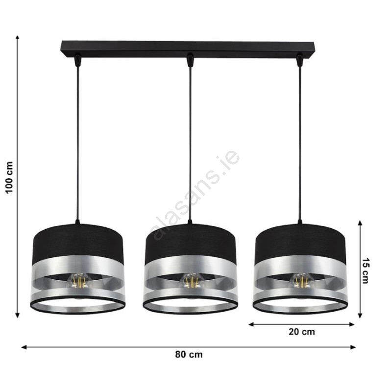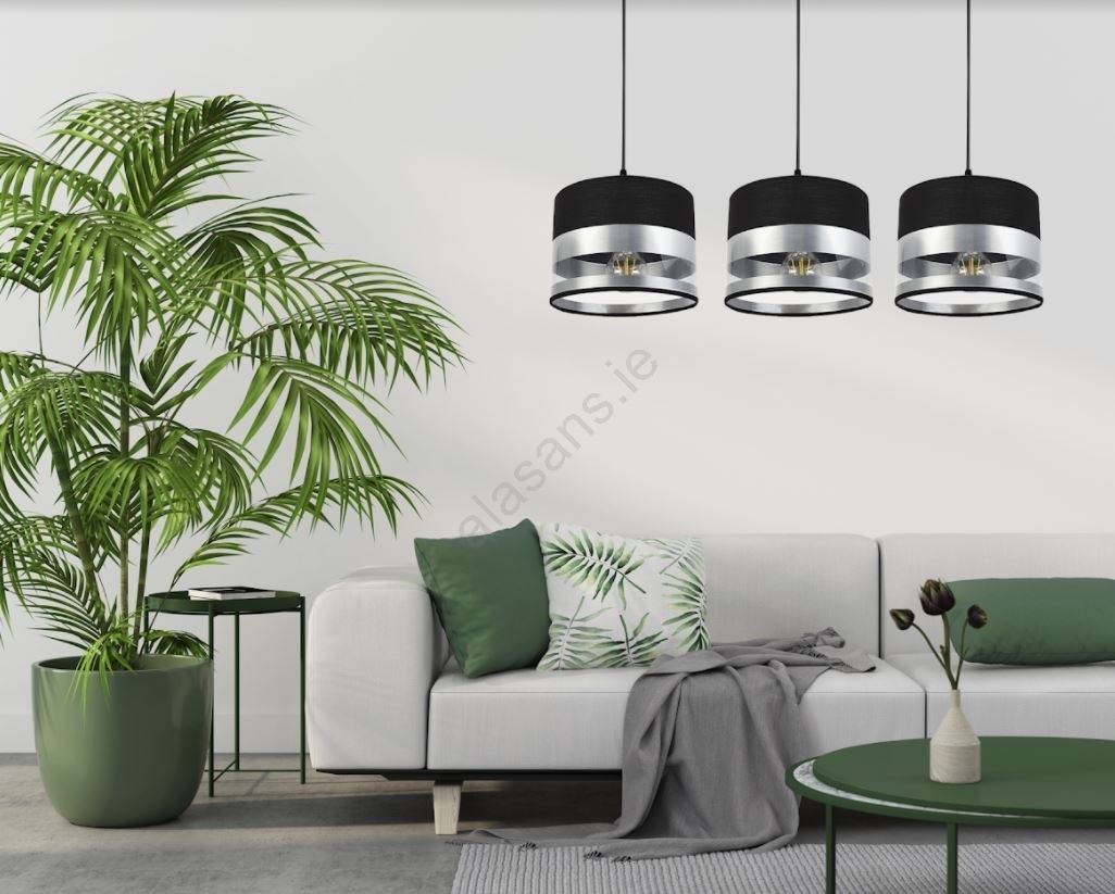 Chandelier on a string MILO 3xE27/60W/230V silver/black characterizes nice and functional design.  A bulb with E27 cap is suitable for the light. Here, you can buy other bulbs at advantageous prices. You will have an interesting addtiion to your home.