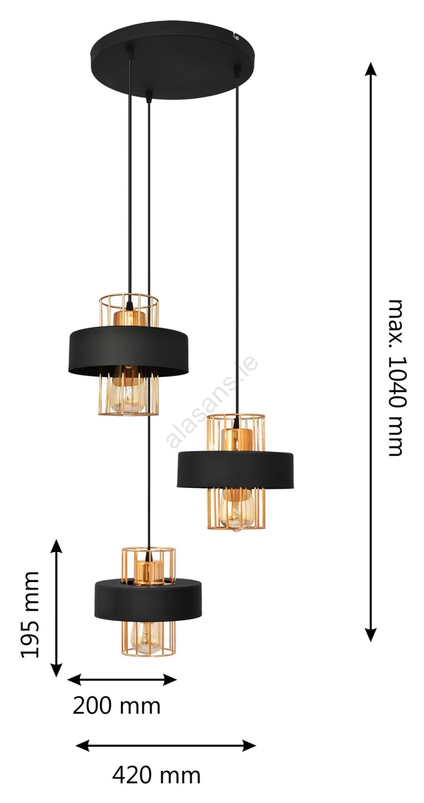 Chandelier on a string VOLTA 3xE27/15W/230V black/gold