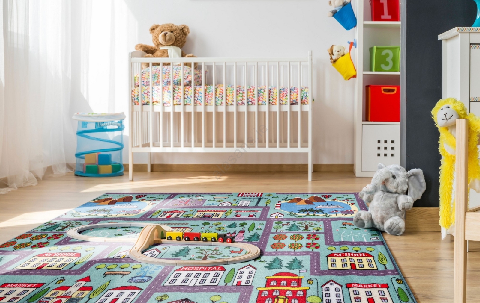 Children's rug STELLA STREETS 120x170 cm turquoise/city