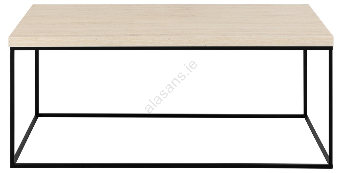 • Top made of rough travertine melamine, base in matte black rough powder-coated steel.