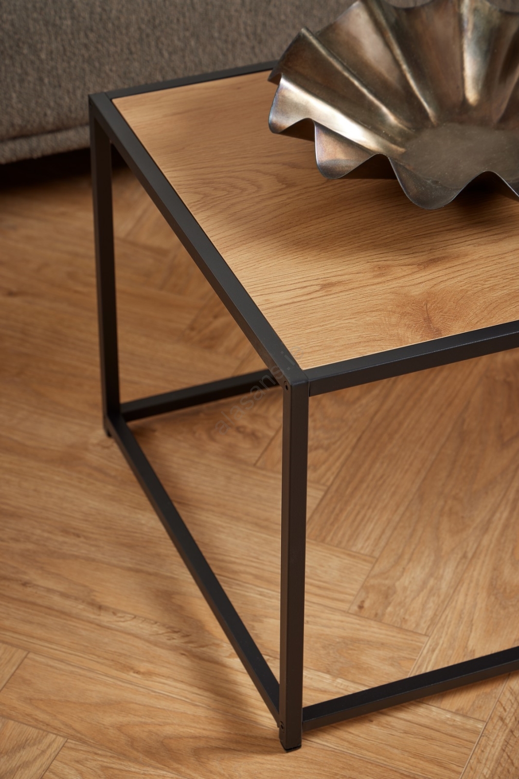 • The metal frame with a black powder-coated finish lends an industrial touch and provides stability.