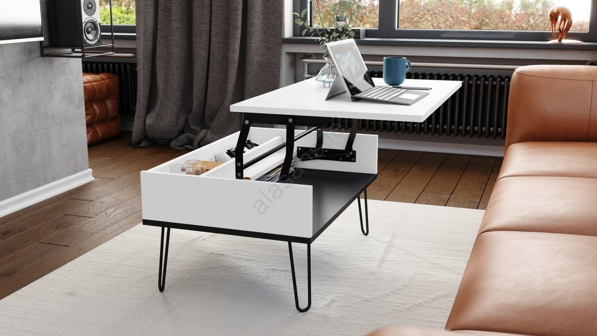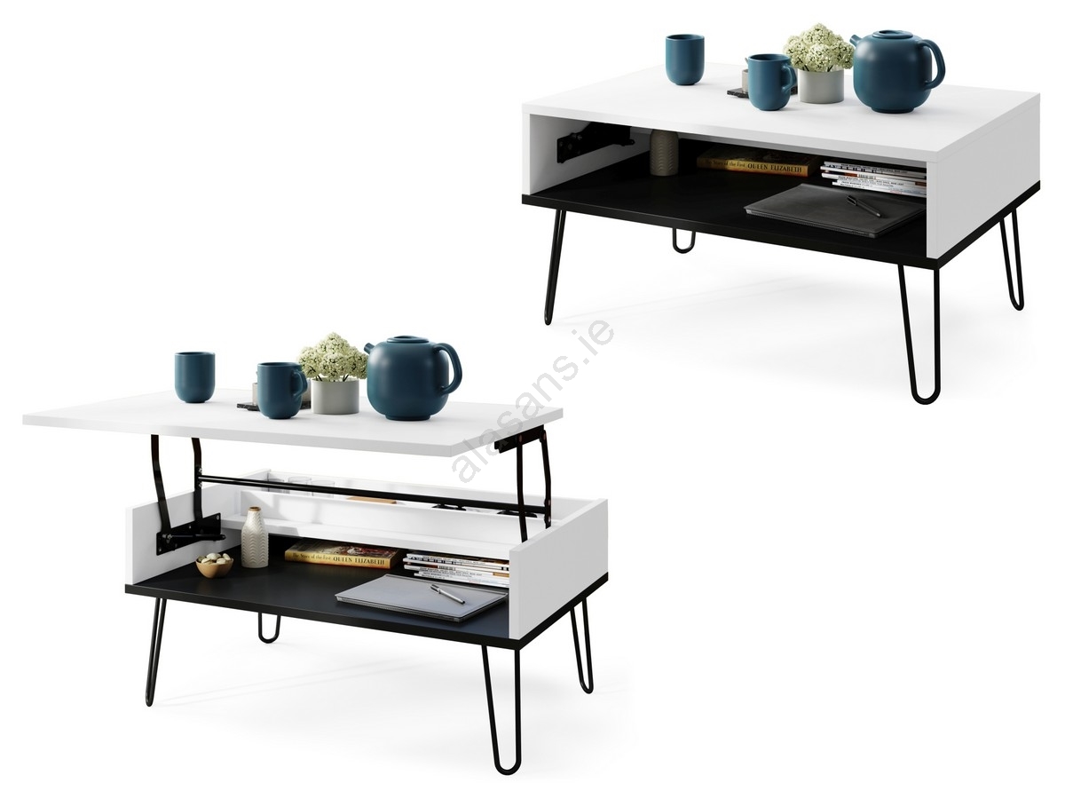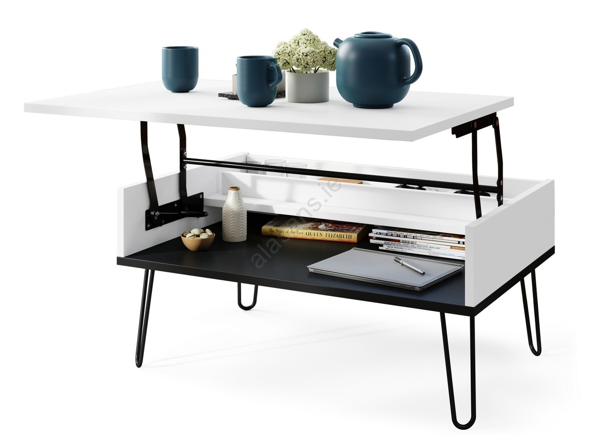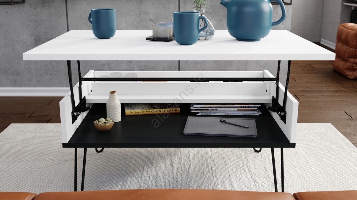 • HALIJA lift-top coffee table with lower shelf, white/black