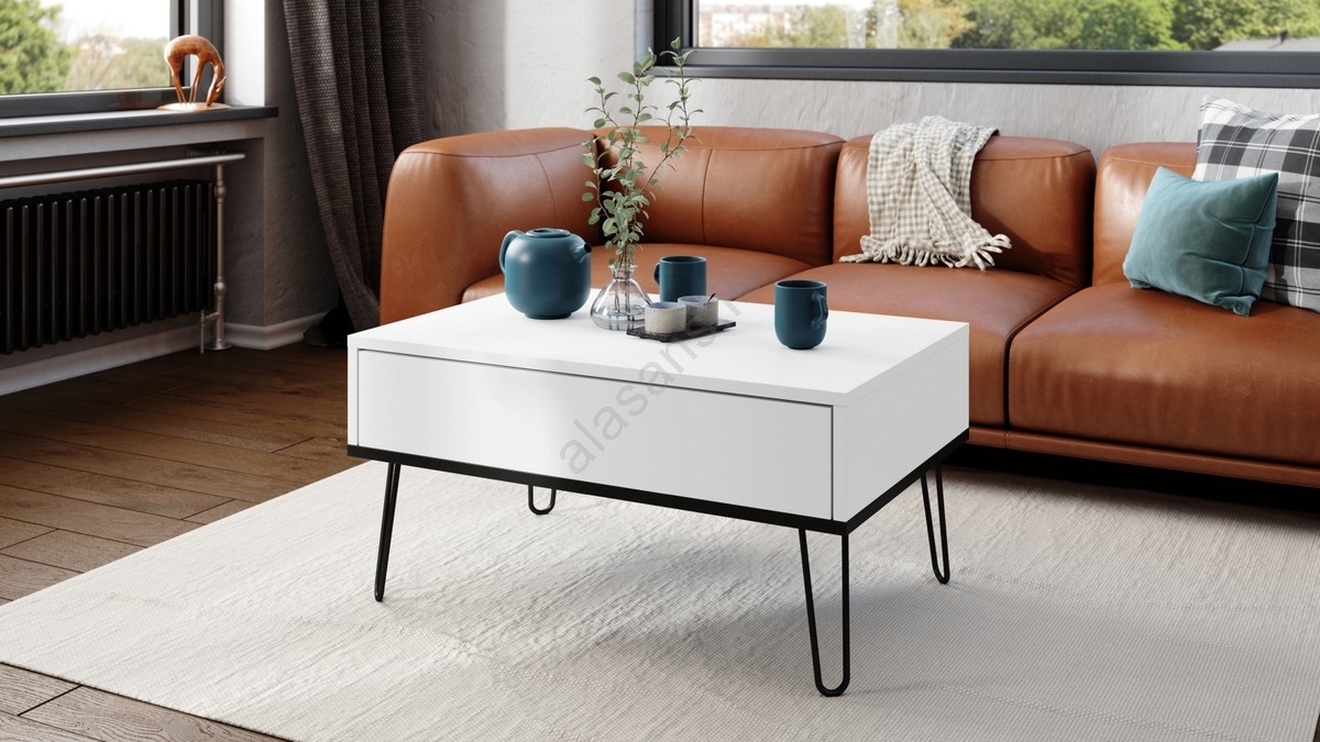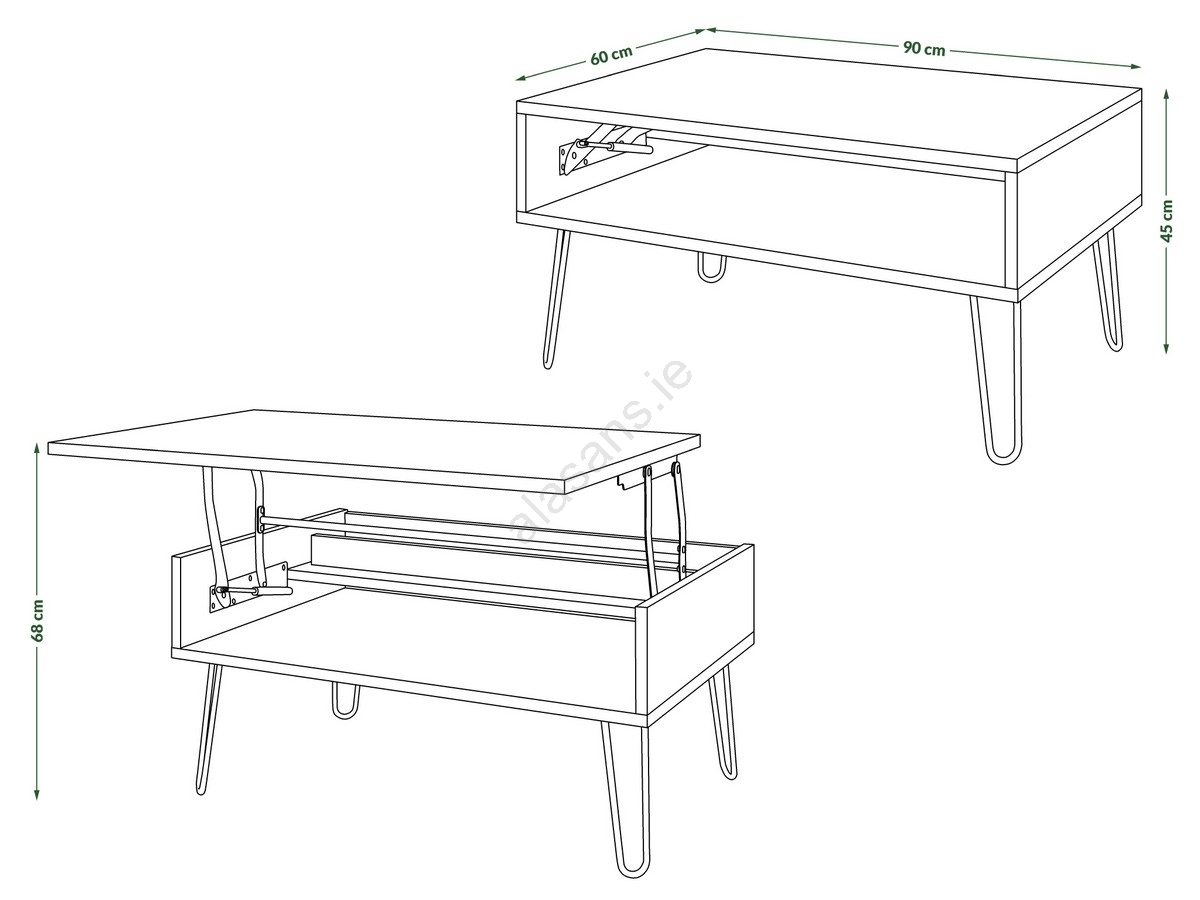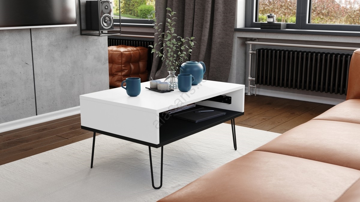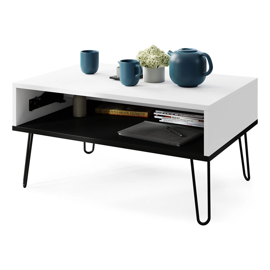 • HALIJA lift-top coffee table with lower shelf, white/black
