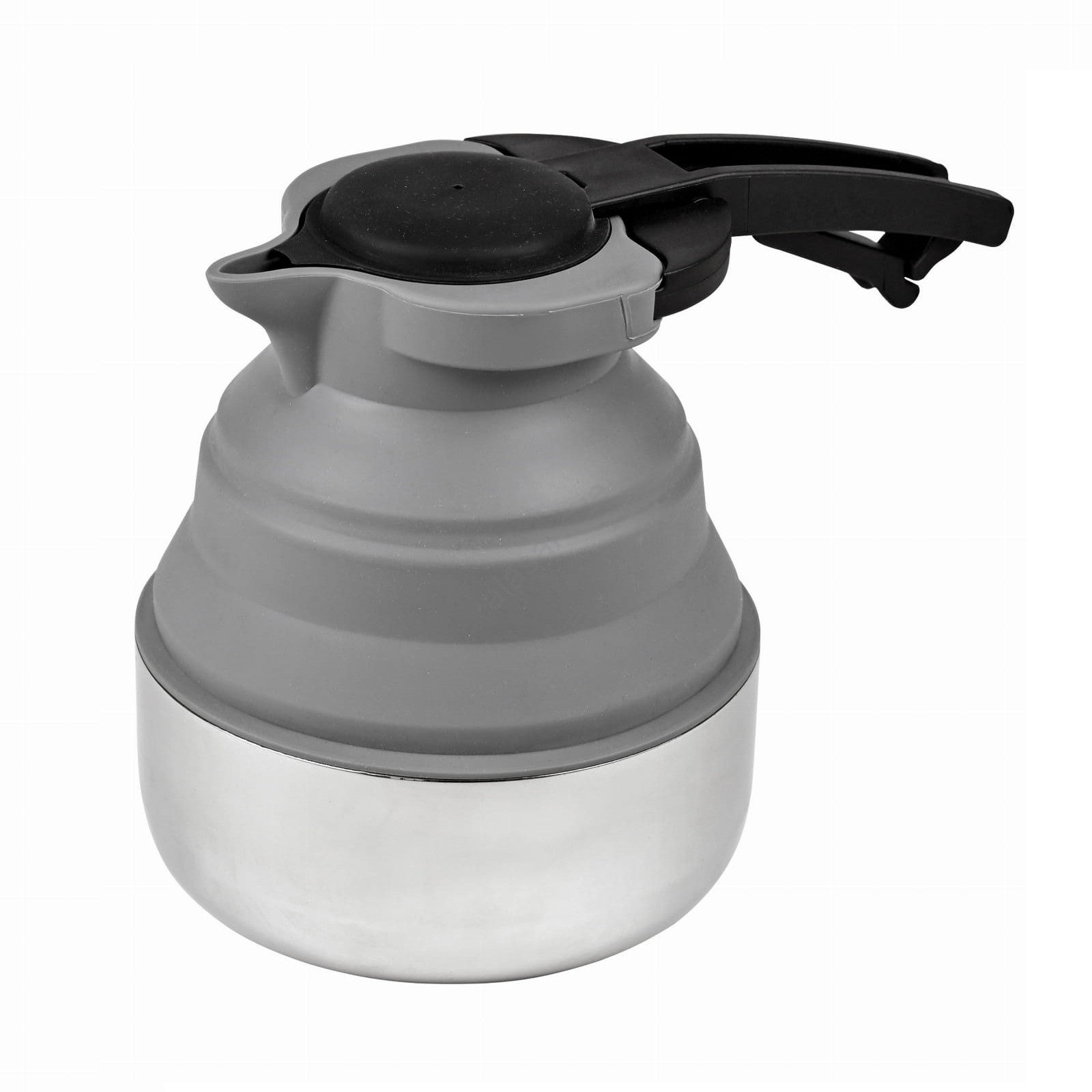 • The 1.8‑litre collapsible kettle is a practical solution for camping, cottages, caravans, tents or small kitchens — it folds easily to save space.