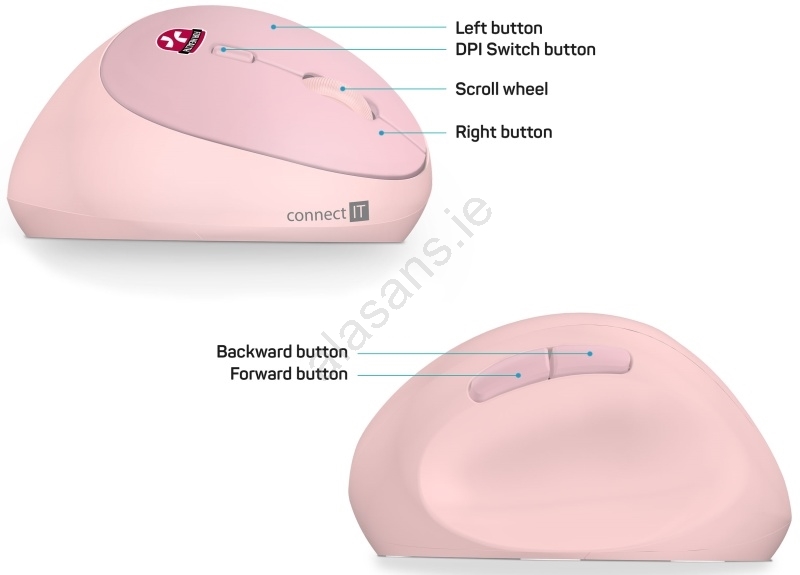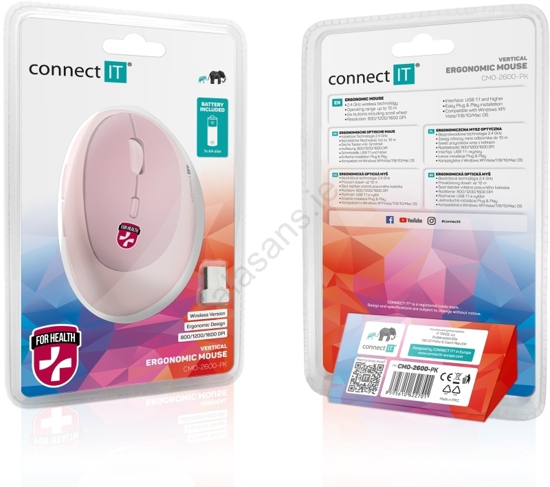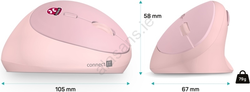 CONNECT IT CMO-2600-PK - Ergonomic Wireless Mouse 800/1200/1600 DPI 1xAA Pink