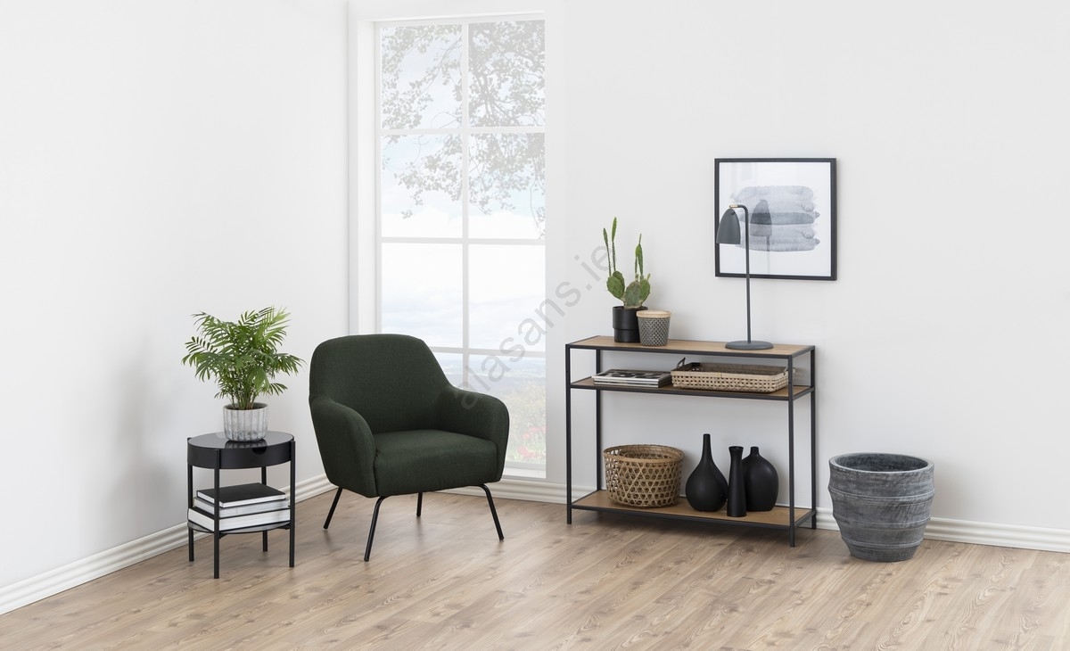• Top panel and 2 shelves in matte craft finish; base in matte black, coarse powder-coated steel.