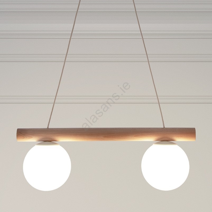 Corded pendant lamp WOODSTOCK 2xE27/15W/230V wood/cream