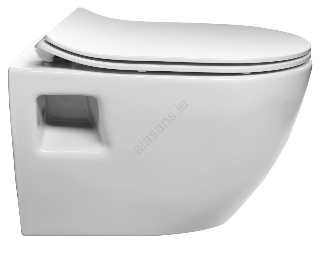 • The wall-hung toilet bowl is made of ceramic.