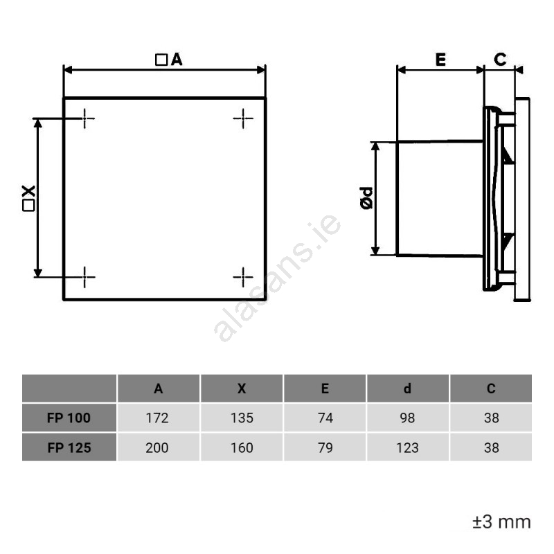 • The fan includes a backdraft damper integrated directly on the outlet, which can be easily removed if required.