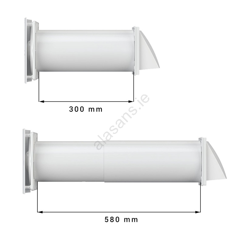 • The telescopic duct, with a range of 300 to 580 mm, ensures easy adaptation to different wall thicknesses.