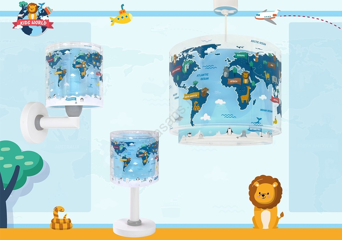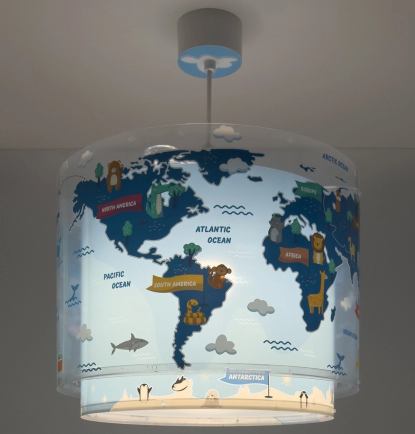 Dalber 40672 - Children's pendant light WORLD 1xE27/15W/230V Blue