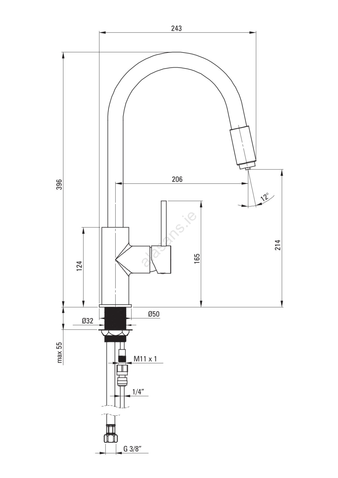 • The faucet is fitted with an aerator that ensures a smooth, even water flow.