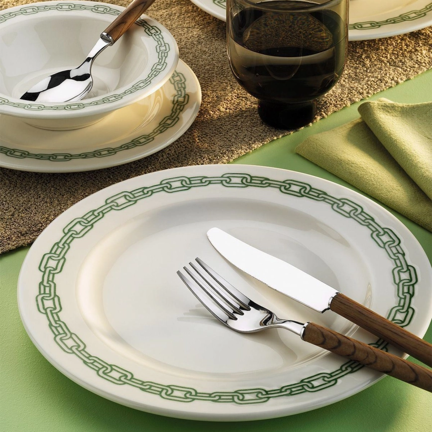 Dining set 24 pcs white/green/porcelain