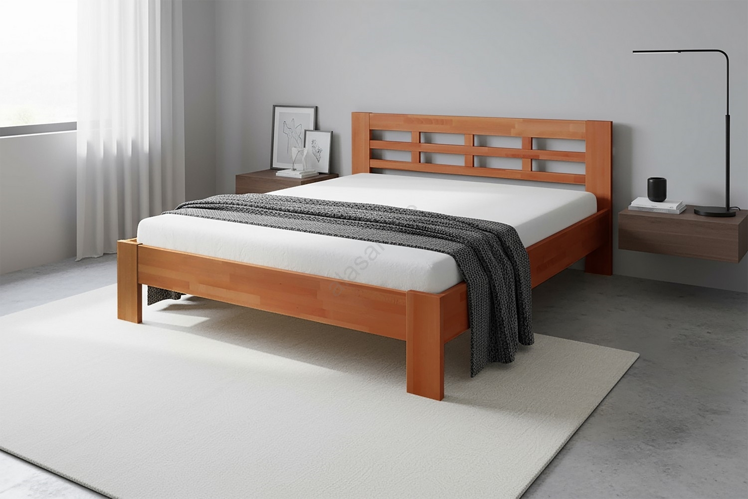 • Double solid wood bed ANGELA 180x200 cm walnut