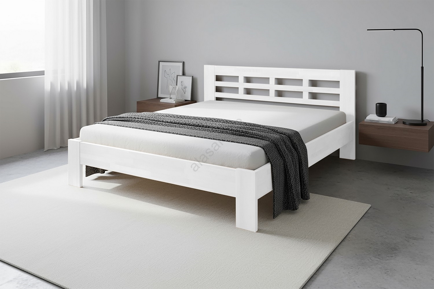 ANGELA Solid Wood Double Bed 180x200 cm, White
