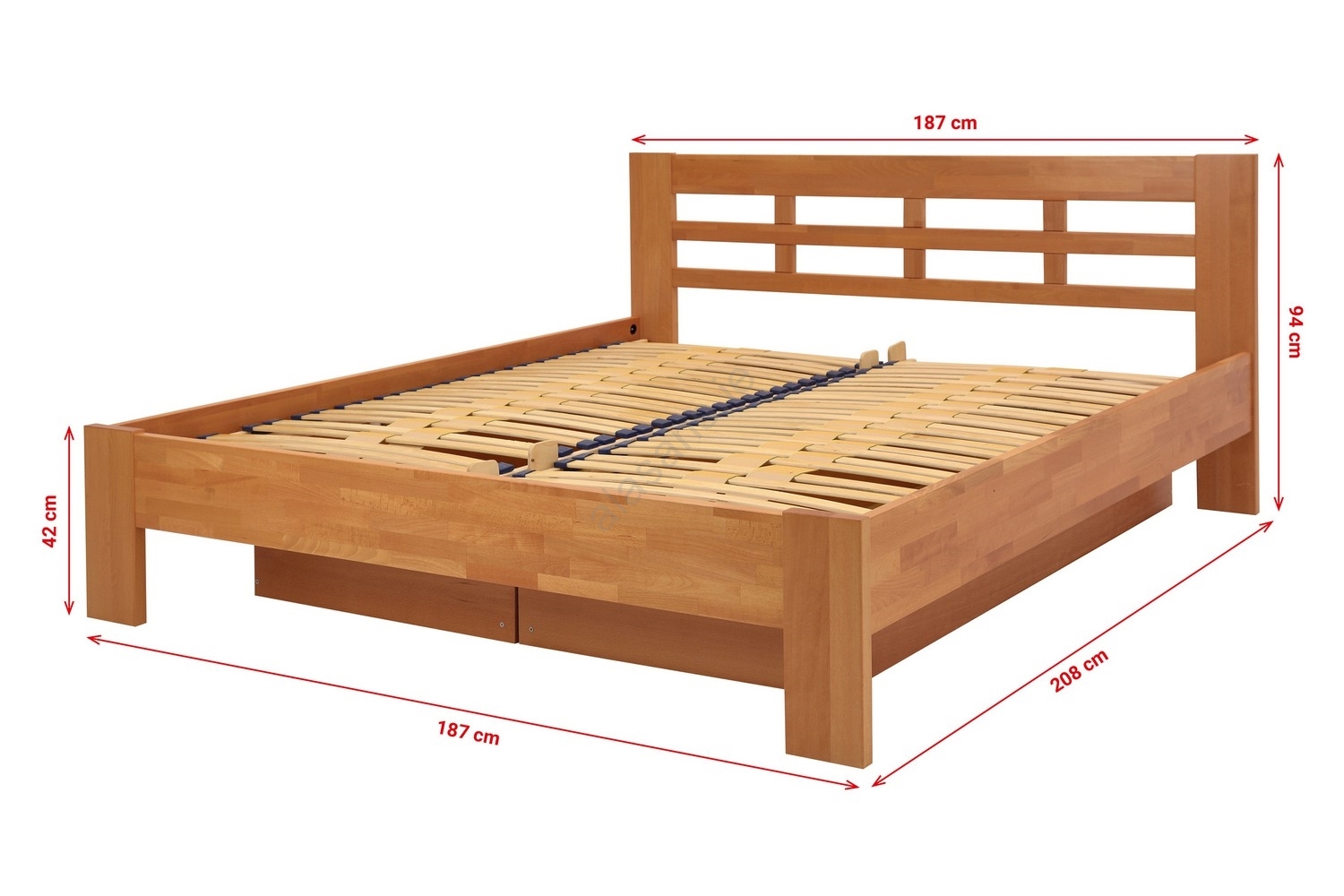 • ANGELA Solid Wood Double Bed with Storage, 180x200 cm, Beech
