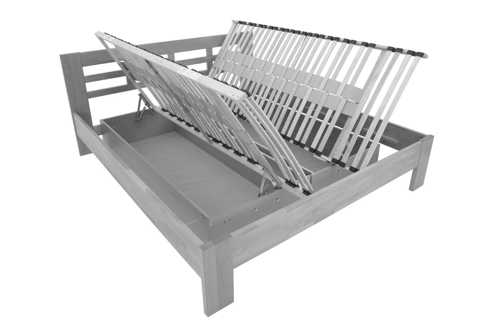 • ANGELA Solid Wood Double Bed with Storage, 180x200 cm, Beech