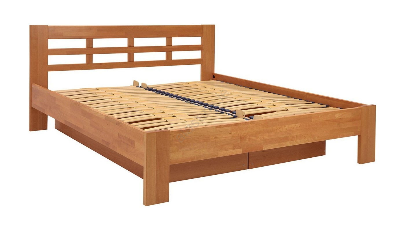 • Double bed AGELA made of solid wood, combines contemporary design with practical functionality.