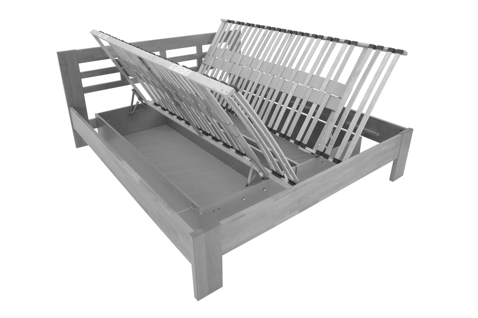 • ANGELA Solid Wood Double Bed with Storage, 180x200 cm, Beech