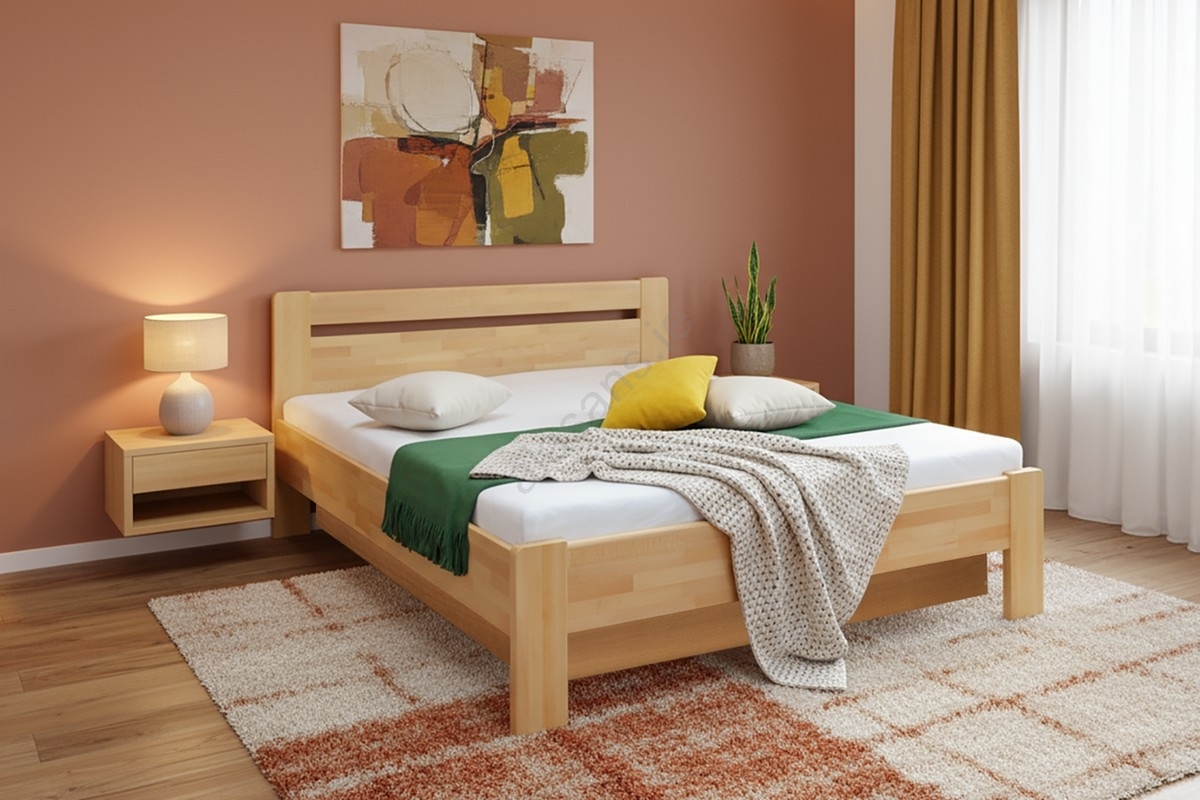 • Double bed with storage AMARA made of solid wood, combines modern style with practical features.