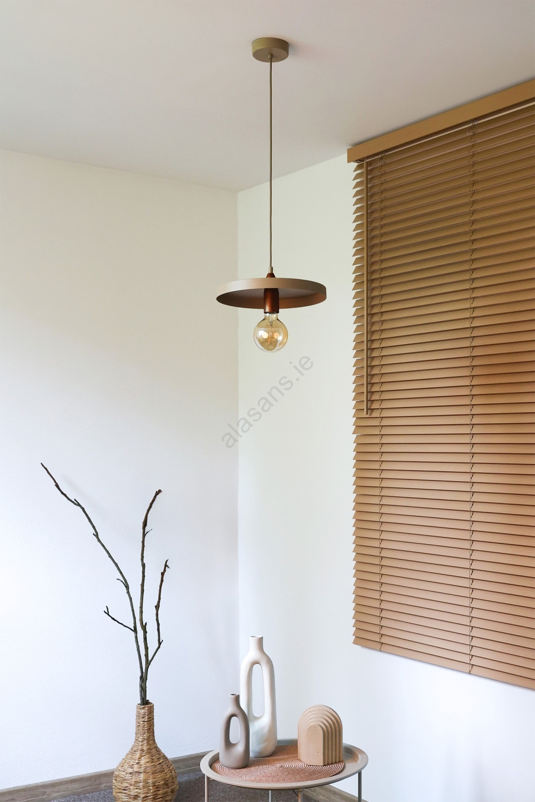 Duolla - IRONLINE Cable Pendant Lamp 1xE27/15W/230V Ø 30 cm beige/copper characterizes nice and functional design.  A bulb with E27 cap is suitable for the light. Here, you can buy other bulbs at advantageous prices. You will have an interesting addtiion to your home.