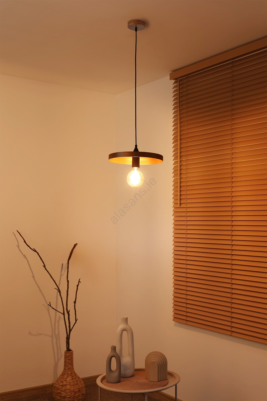 Duolla - IRONLINE Cable Pendant Light 1xE27/15W/230V Ø 30 cm Copper/Black characterizes nice and functional design.  A bulb with E27 cap is suitable for the light. Here, you can buy other bulbs at advantageous prices. You will have an interesting addtiion to your home.