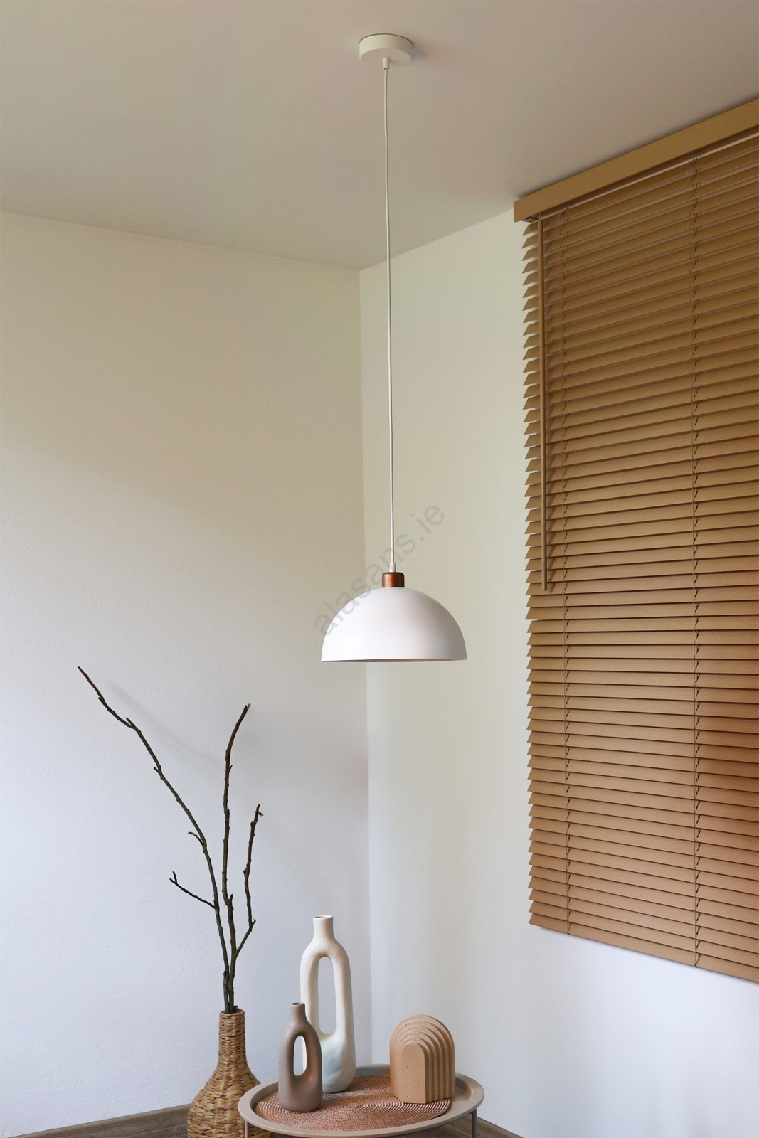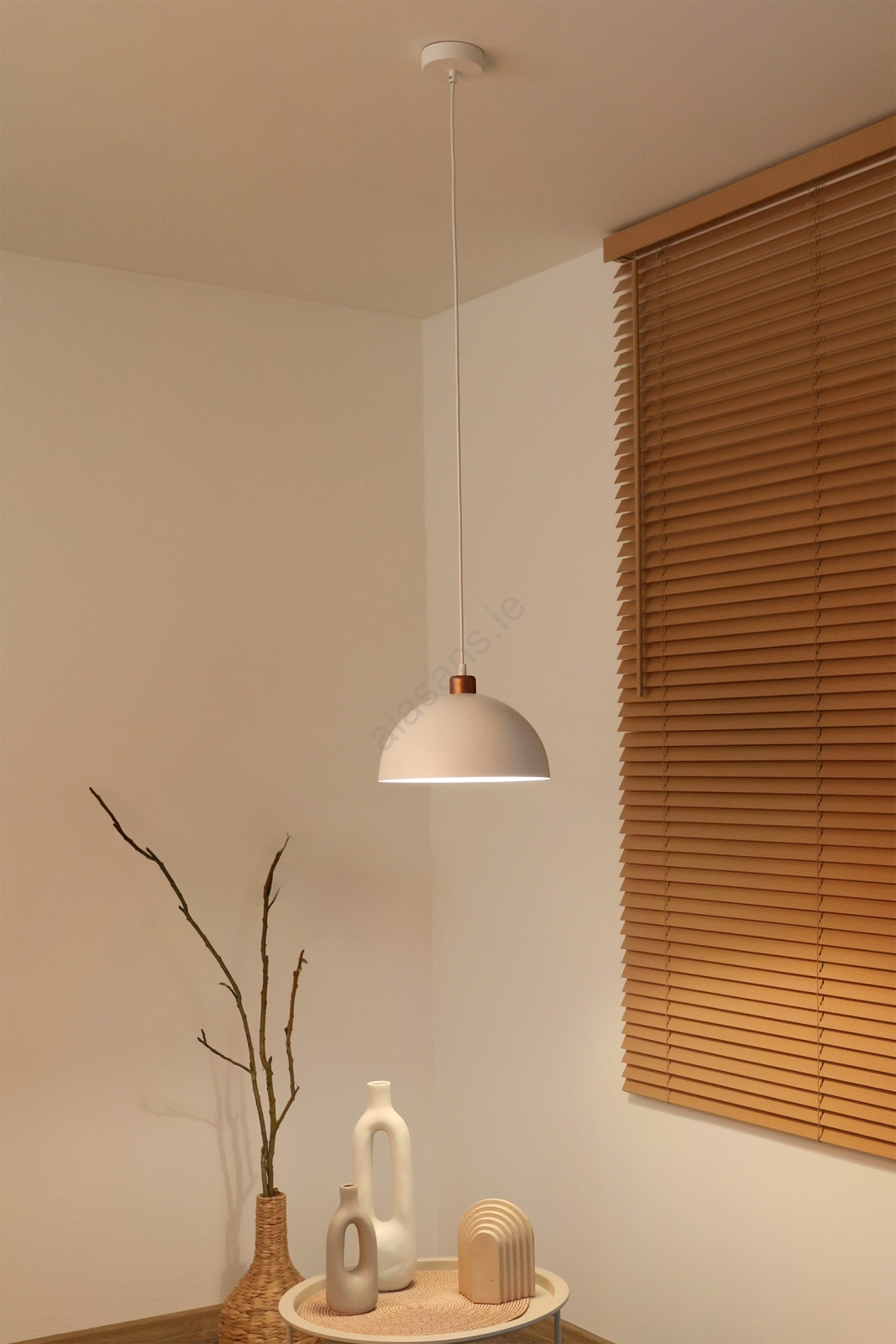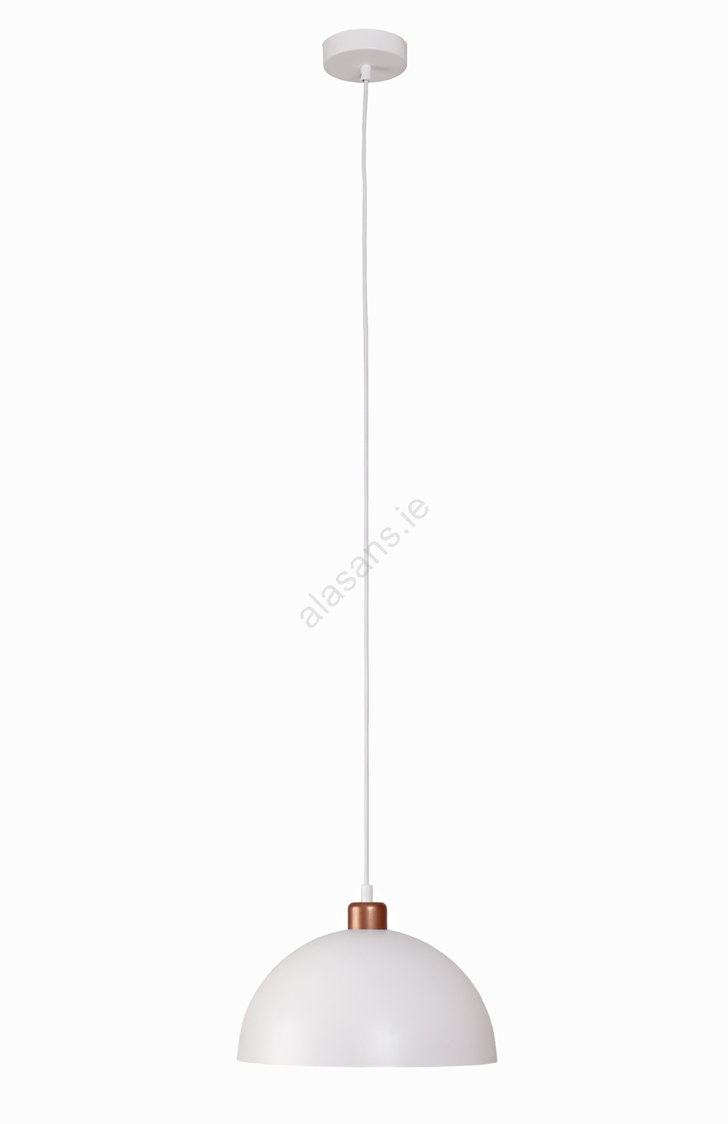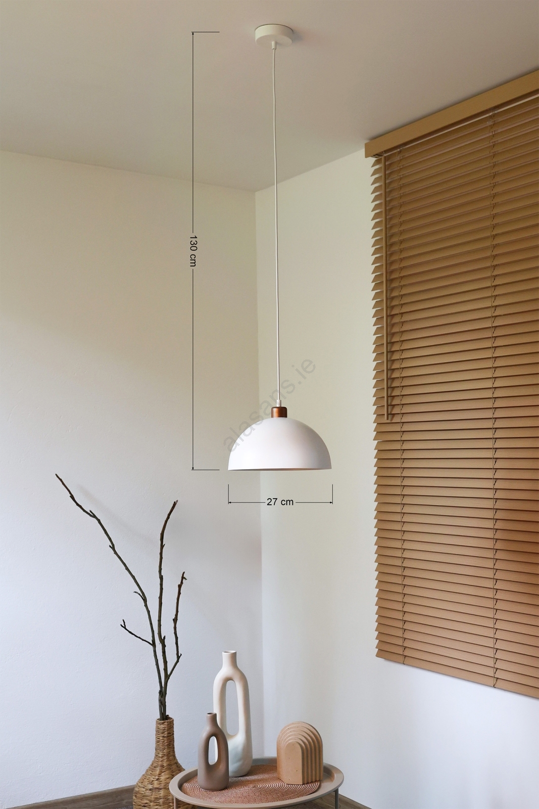 Duolla - IRONLINE cable-suspended pendant light 1×E27/15W/230V, Ø 27 cm, White/Copper characterizes nice and functional design.  A bulb with E27 cap is suitable for the light. Here, you can buy other bulbs at advantageous prices. You will have an interesting addtiion to your home.