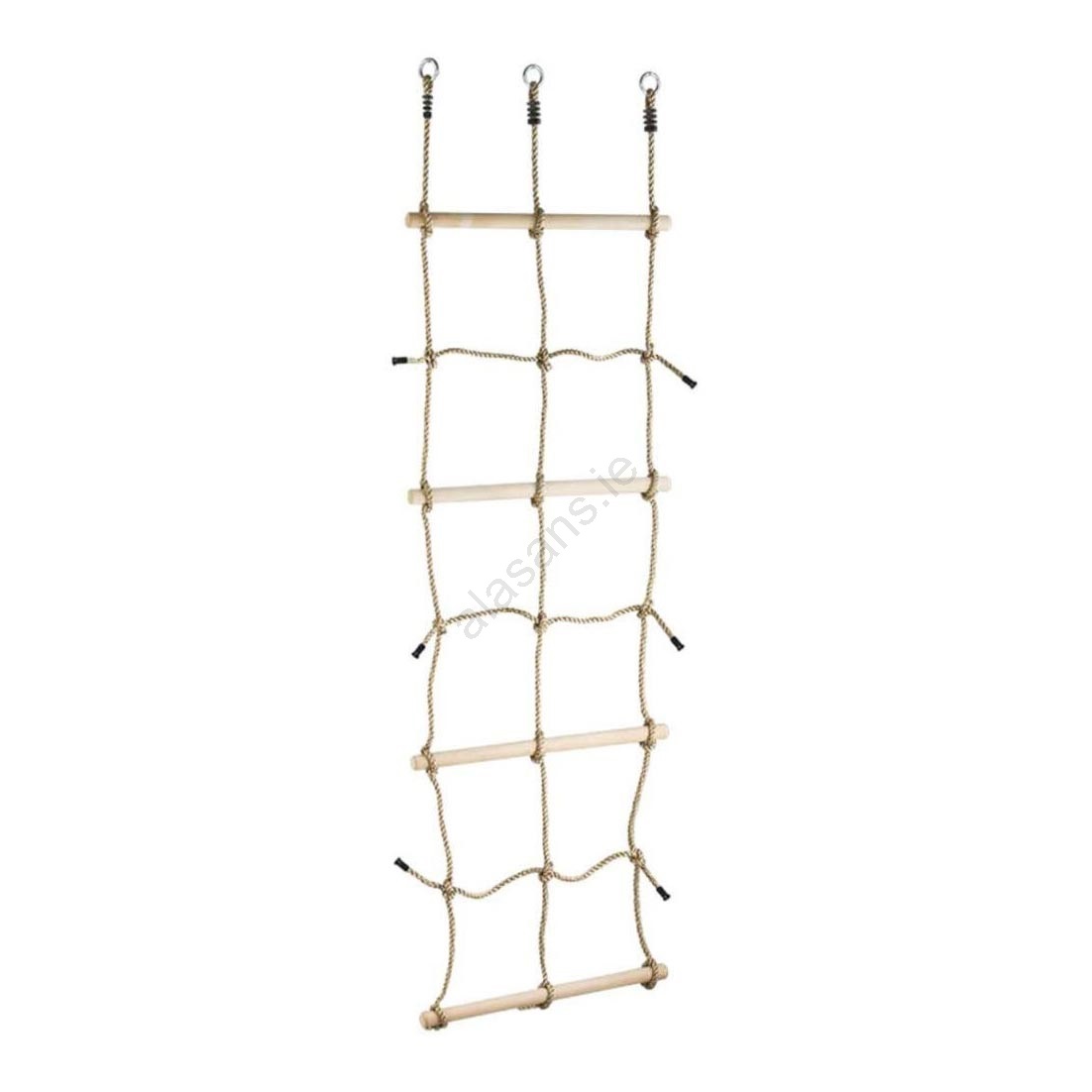 • Climbing net with wooden rungs with 3 hanging rings.