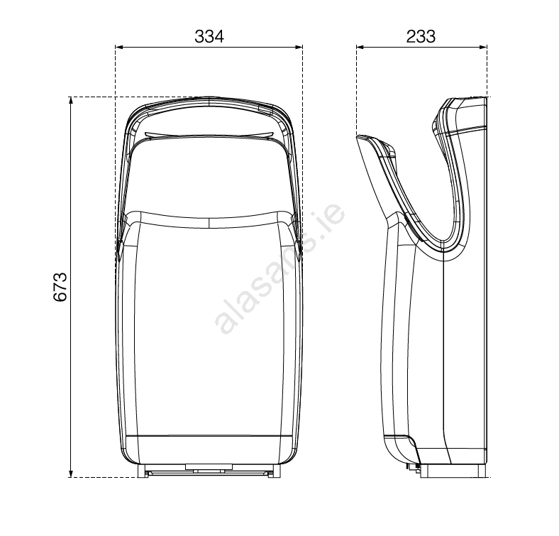 • Dries whole hands from both sides at once.