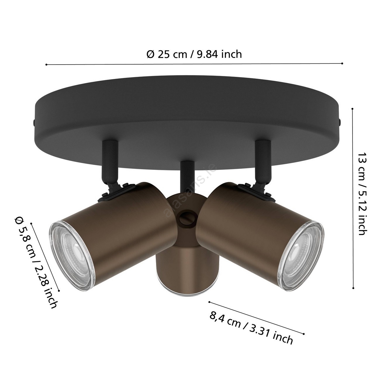 • Eglo - Bathroom spotlight 3x GU10/5W/230V IP44 black/brown
