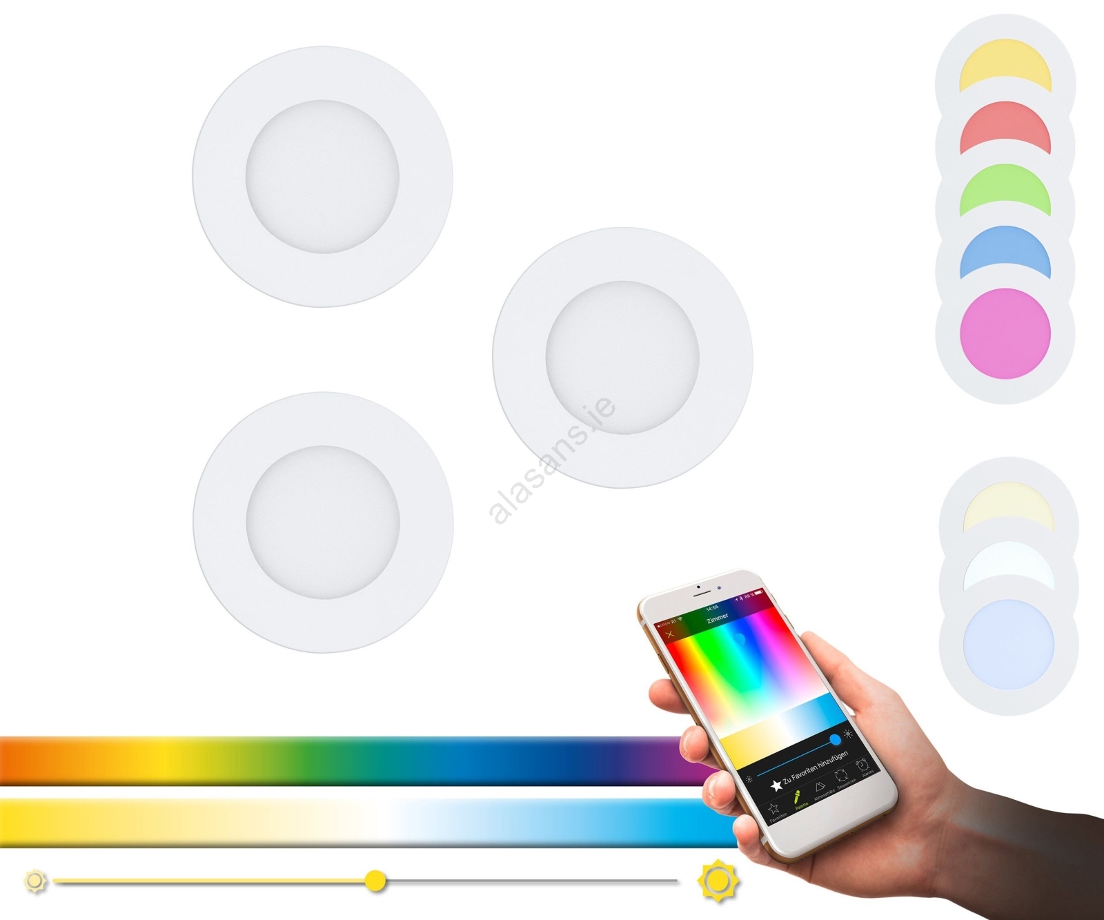 • Eglo - Set of 3 LED RGB Dimmable Recessed Downlights FUEVA-C LED/3W/230V Ø 8.5 cm