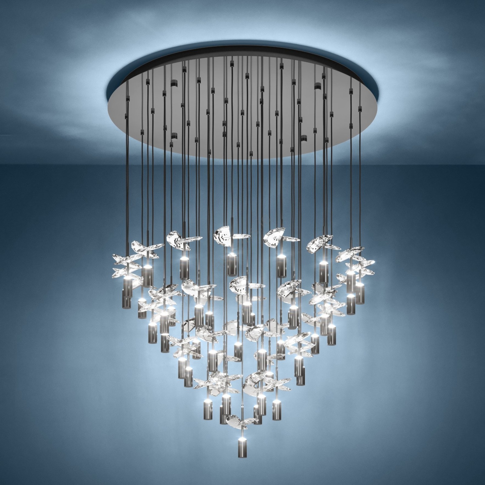 Eglo Stars of Light - LED pendant on cable, 43 LEDs / 2.1 W each / 230 V, 2200/3000/4000 K, polished chrome