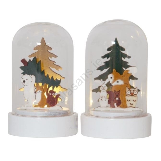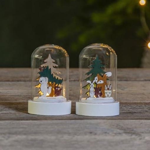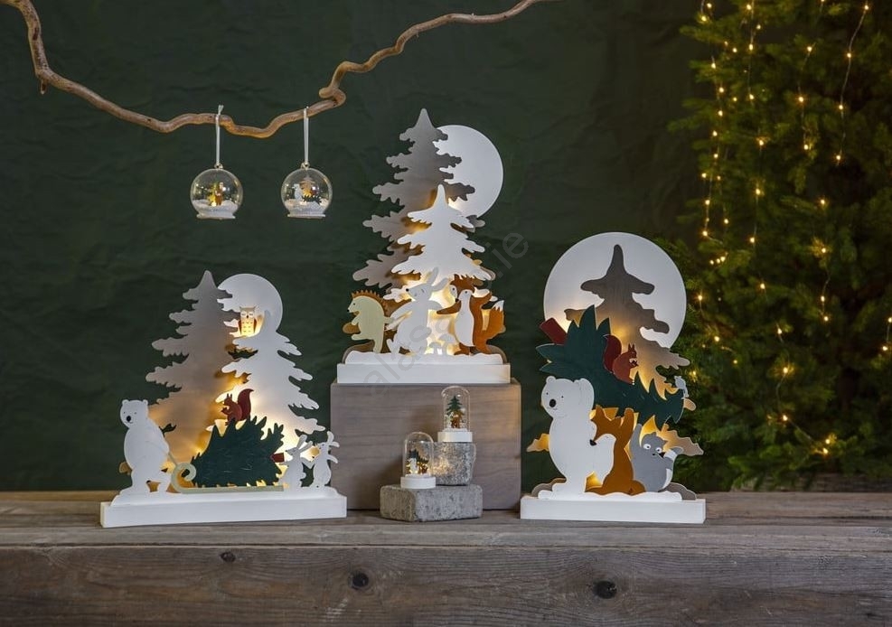 • Set of 2 LED Christmas decorations made of laser-cut wood.