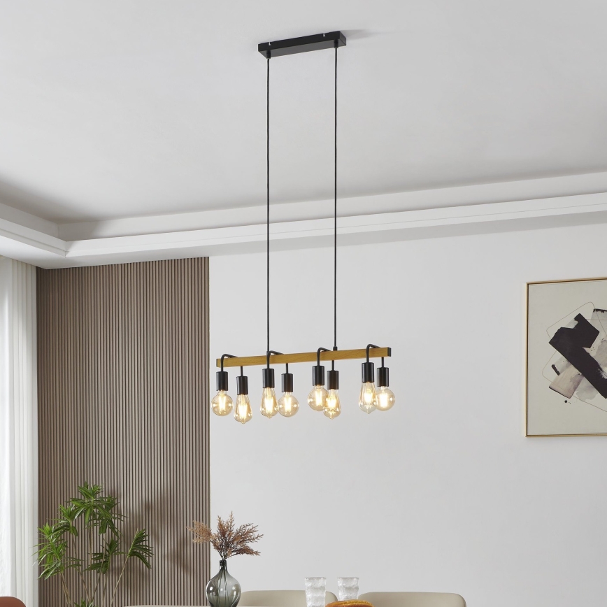 Eglo 43316 - ERRIBERA Pendant on Cable 8xE27/40W/230V Oak/Black characterizes nice and functional design.  A bulb with E27 cap is suitable for the light. Here, you can buy other bulbs at advantageous prices. You will have an interesting addtiion to your home.