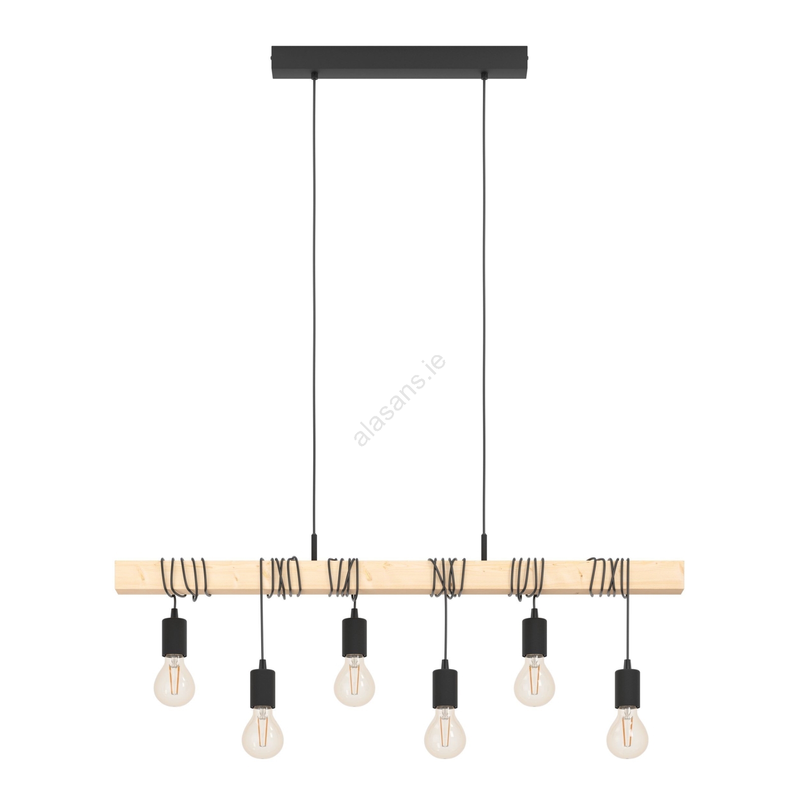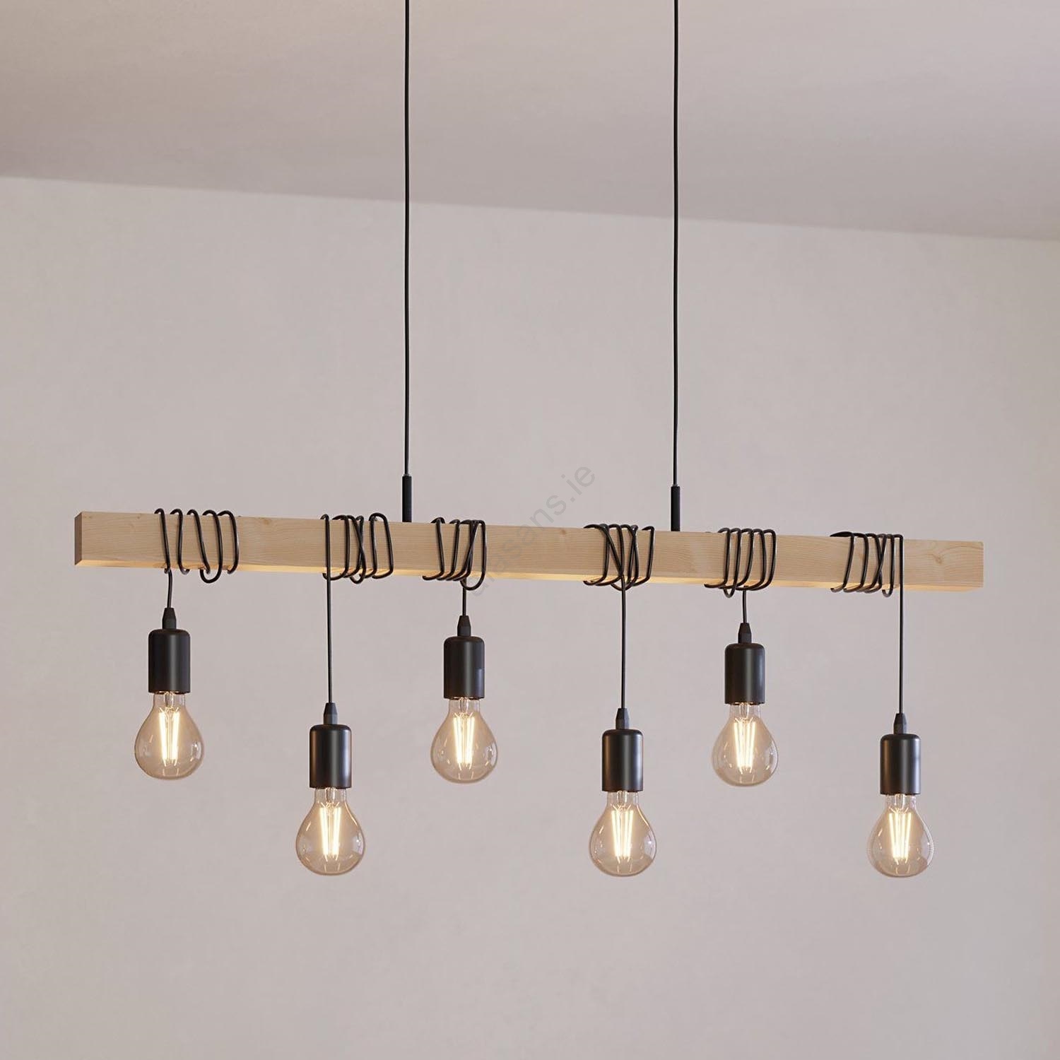 Eglo - Cable-suspended chandelier TOWNSHEND 6xE27/60W/230V characterizes nice and functional design.  A bulb with E27 cap is suitable for the light. Here, you can buy other bulbs at advantageous prices. You will have an interesting addtiion to your home.