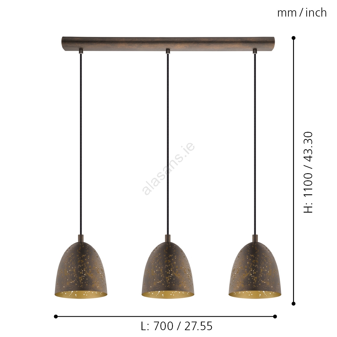 Eglo 49871 - SAFI Pendant Light 3xE27/60W characterizes nice and functional design.  A bulb with E27 cap is suitable for the light. Here, you can buy other bulbs at advantageous prices. You will have an interesting addtiion to your home.