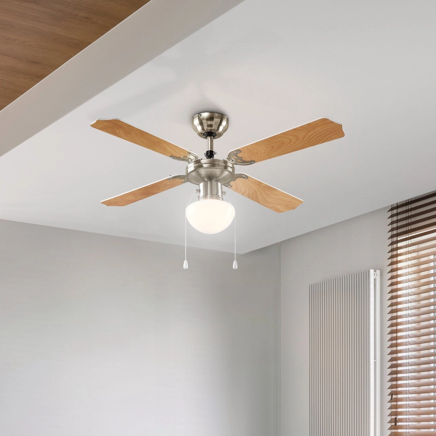 Eglo 56035 - LED Ceiling Fan 1 x E27, 4.9W, 230V, 3000K, Ø 106.6 cm characterizes nice and functional design.  A bulb with E27 cap is suitable for the light. Here, you can buy other bulbs at advantageous prices. You will have an interesting addtiion to your home.