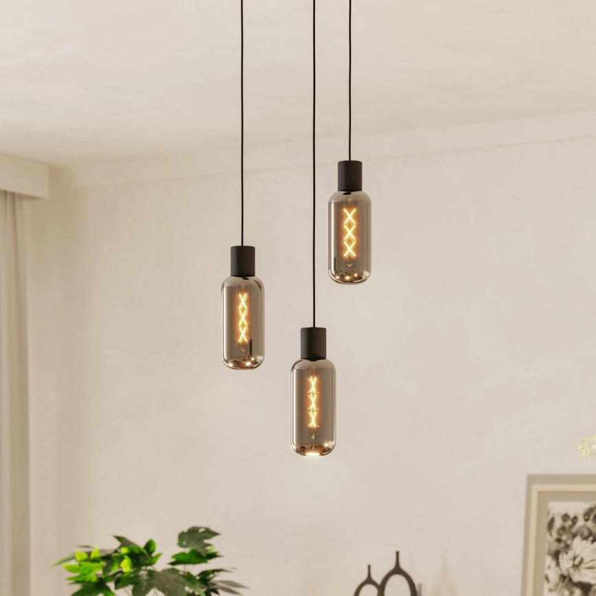 Eglo - Cable-hung pendant light 3xE27/4W/230V black/smoked
