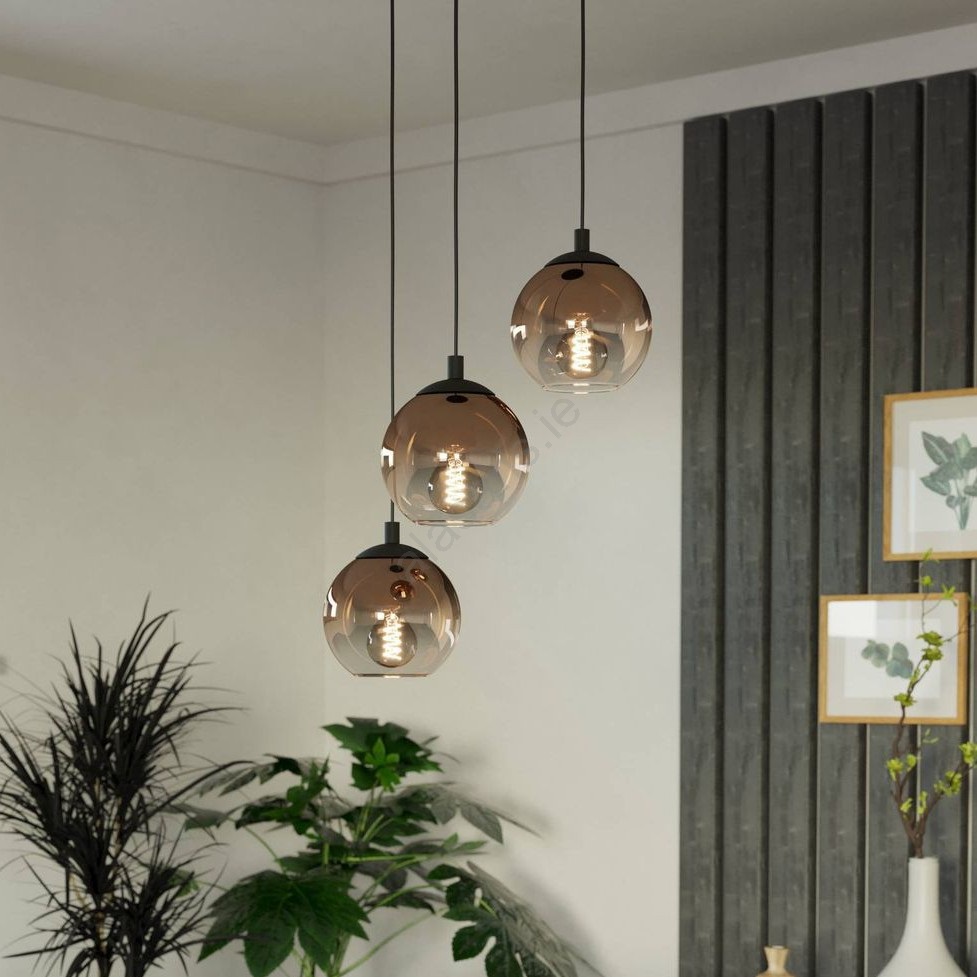 Eglo - Cable-suspended pendant light 3xE27/60W/230V black/beige/smoked characterizes nice and functional design.  A bulb with E27 cap is suitable for the light. Here, you can buy other bulbs at advantageous prices. You will have an interesting addtiion to your home.