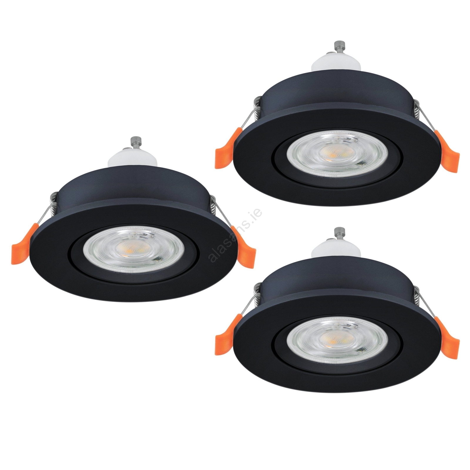 • Eglo - Set of 3 LED Bathroom Recessed Spotlights, 1x GU10 / 4.5W / 230V, IP44, Black