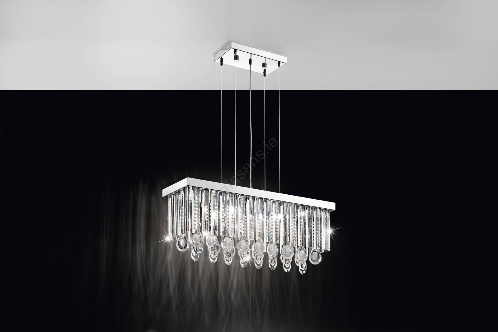 • Suspended chandelier with crystal elements, light color = warm white.