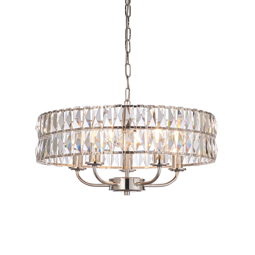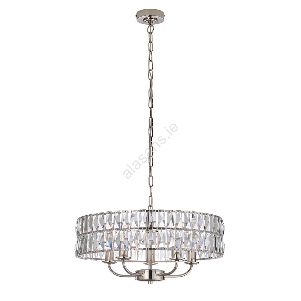 Endon 104467 - Chandelier on a chain CLIFTON 5xE14/6W/230V shiny chrome/clear d. 50,5 cm characterizes nice and functional design.  A bulb with E14 cap is suitable for the light. Here, you can buy other bulbs at advantageous prices. You will have an interesting addtiion to your home.