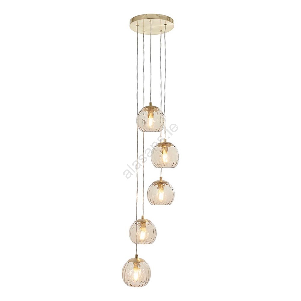 Endon 91972 - DIMPLE cable pendant light 5xE14/7W/230V gold/smoked beige characterizes nice and functional design. A bulb with E14 cap is suitable for the light. Here, you can buy other bulbs at advantageous prices. You will have an interesting addtiion to your home.